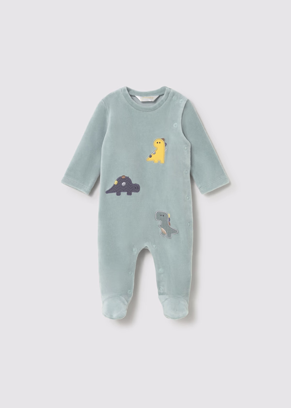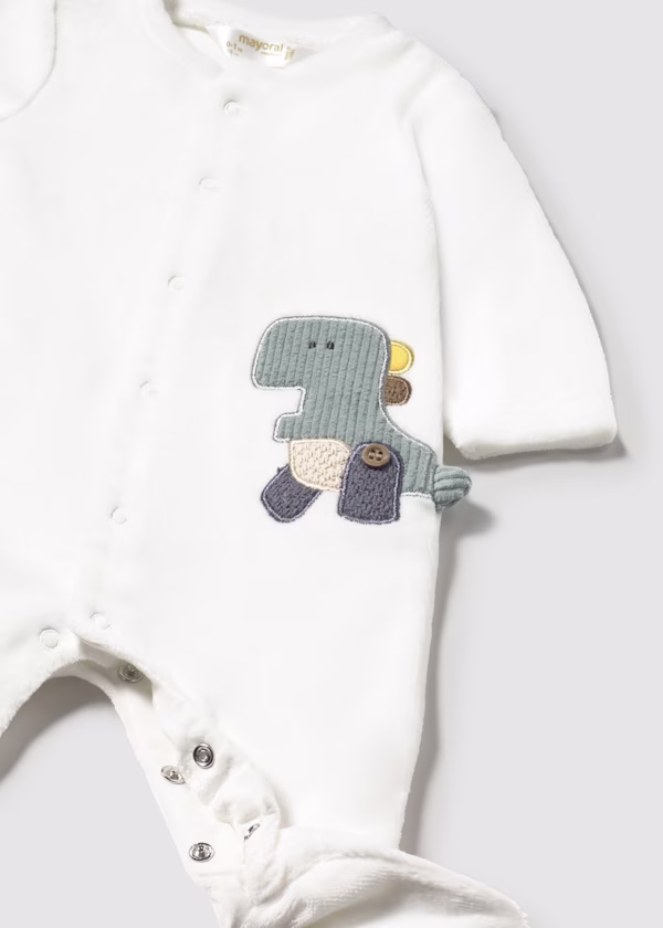 Salopeta cu maneca lunga pentru nou-nascut. Guler rotund. Inchidere prin capse pe partea frontala. Capse intre picioare pentru a facilita imbracarea articolului. Material calduros de bumbac, moale la atingere si catifelat. Elemente decorative: broderii.